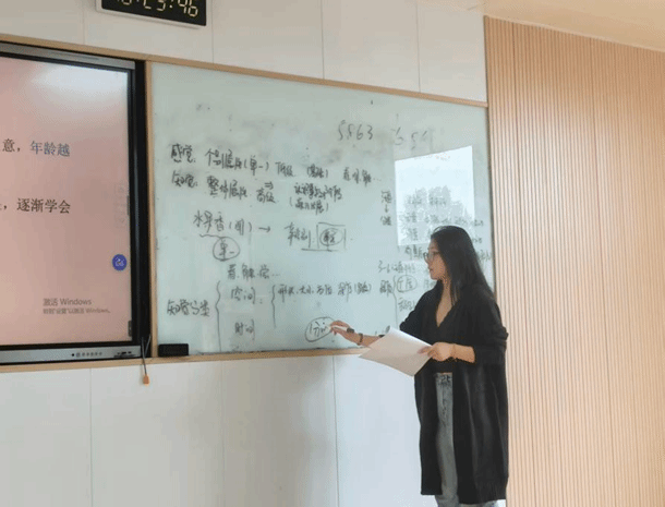 针对“观察力发展“的教学内容,构建了“本土理论+国际案例+实践创新”的三维教学模式。刘璇老师先讲解我国学前教育中 “循序渐进培养幼儿观察能力” 的传统经验,随后引入国外前沿实践:介绍德国森林幼儿园的 “自然观察法”,通过播放幼儿在森林中观察动植物、记录自然现象的视频,展示国外如何利用真实自然环境,培养幼儿细致观察、对比分析的能力;分享瑞吉欧教育体系的 “项目式观察” 模式,以 “幼儿园的蝴蝶” 项目为例,讲解国外教师如何引导幼儿围绕主题持续观察、记录变化、深入探究,从而提升观察力的系统性与深度。