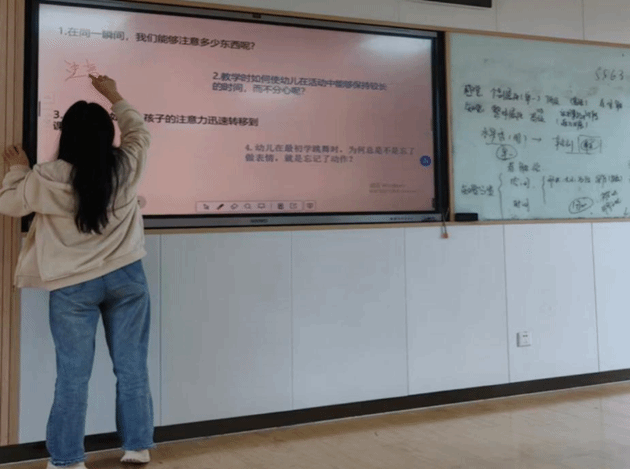 本周课堂主要围绕学前教育理论基础的核心模块,精准把握幼儿心理发展的关键规律,将 “幼儿注意的发展” 与 “观察力的发展” 两大知识点有机融合,同时融入国际前沿实践经验,将抽象的教育理论转化为具象可感的课堂体验。课堂初始,刘璇老师带领学生回顾复习,将幼儿感知觉发展特点特征进行整体的回顾,帮助学生厘清知识点,构建知识框架。