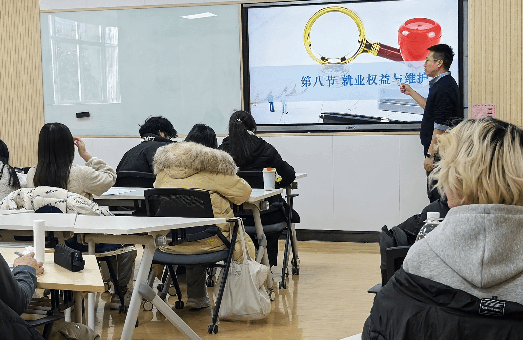 在讲授过程中,王博士引导学生通过霍兰德职业兴趣理论、SWOT分析法等工具进行自我评估,鼓励大家开展生涯人物访谈、参与社会实践,主动探索职业世界。课堂互动频繁,案例鲜活,尤其是就业心理调适、求职材料制作、面试技巧讲授等环节,增强了学生的参与感和获得感。