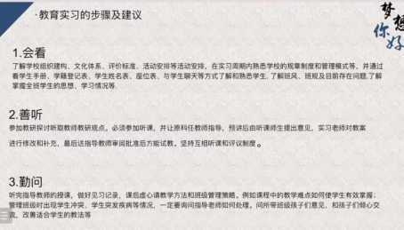 在本次职业规划研讨会中,何校长指出,教师是人类历史上最伟大且神圣的职业之一,是太阳下最崇高的职业。首先,就同学们未来参加教育实习方面,何校长提出多条建议,包括会看、善听、勤问、必讲和反思总结,并强调作为实习教师,应当多了解熟悉学生情况,善于听取同行教师的建议,在授课完成后积极反思课堂教学,不断调整教学内容,改进教学方法。