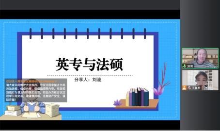 随后,刘流博士向同学们介绍了法律硕士的相关内容。法律硕士指本科为非法学但是硕士为法学,对于英专生来说就是“英语+法律=涉外法律人才”的强强联合。刘流博士也向同学们罗列了考法律硕士(非法学)的优点,最大最吸引人的莫过于不用考数学;其次,法硕的就业范围较广,无论是考公、事业单位、国企还是外企都需要法律人才。