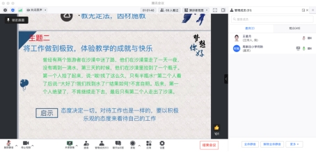 为进一步加强教育方向同学们对教师职业的认知与理解,并帮助同学们制定合理清晰的职业发展规划,外语系英语专业组织英语专业教育方向的同学们及部分教师代表参加了21级英语专业职业规划讲座网络研讨会。本次研讨会由西安市长安区周家庄小学校长何勃老师主讲,主要对教师职业生涯等方面作了全面的讲解,英语专业教师王星月主持本次研讨会。
