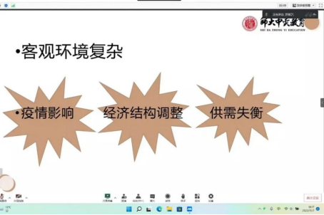 11月7日和8日晚上18点30分至20点30分。人文与国际教育学院开展了线上就业形势解读与就业指导讲座,为我院23届汉语言文学、法学、英语和学前教育专业2000余名学生进行职业选择方面的答疑解惑。让我院毕业生对步入社会走向新的工作岗位有更加明确的认知和目标。