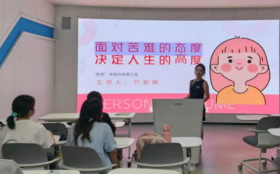 付勤梅女士以自己的亲身经历展开了本次讲座。内容包括“我的故事,职业规划的第一步自我认识,第二步职业认识,第三步明确目标”等。从她的自我成长经历,同学们认识到创业中充满了汗水与泪水,只有不畏艰难,勇于探索才能通往成功之路。