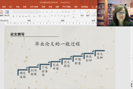 然后,三位指导老师从论文的选题、资料的收集、论文的撰写与论文写作的各项要求四个方面对2025届本科毕业论文工作进行了详细地介绍,并对每一方面应注意的问题做了重点强调和说明,如论文选题的方向、收集资料的技巧、具体的论文写作步骤和论文工作具体的时间安排等。同时,特别强调了选题的重要性,提醒学生要选择自己感兴趣且具有研究价值的选题,并且要及时与指导教师沟通,确保论文研究的深入和系统。
