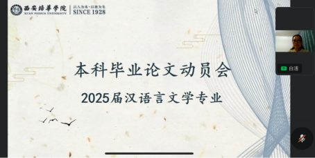 为进一步推进2025届本科生毕业论文工作的标准化和规范化,确保毕业论文工作顺利开展,学院中文系汉语言文学专业于2024年10月11日19:00召开了2025届毕业论文动员大会。本次动员大会由中文系副主任张萍老师、中文系副主任申艳霞老师和2025届毕业论文负责人白洁老师线上分组主持,2025届全体毕业生参加。