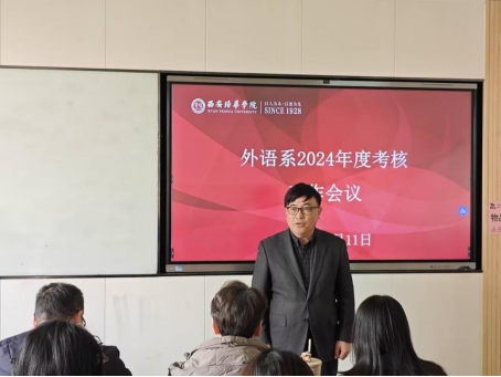 外语系主任李国栋、英语专业带头人齐仲里、外语系副主任金培玉、曹长春以及大学英语课程负责人贾梦琦分别进行了述职汇报,几位系领导从专业建设、师资队伍建设、教学科研等各个方面对自己本年度的工作进行了总结,以及对2025年的工作规划。