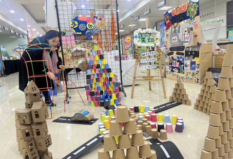 展览现场分为多个区域,每个区域都充满了学生们的创意与热情。在玩教具制作区域,一件件由学生亲手制作的玩教具成为了展览的亮点。这些玩教具不仅制作精美,而且充分考虑到了幼儿的身心发展特点。学生们利用废旧纸材料等环保素材,构建出各种动物形象,既激发了幼儿的想象力,又传递了环保的理念。