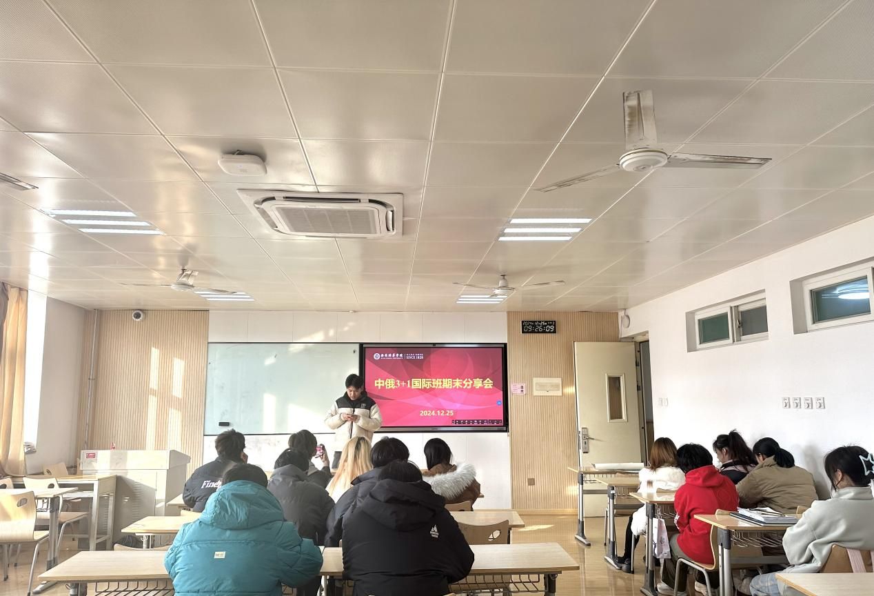 为回顾过去一学期的学习成果,展望未来的留学之路,12月25日,人文与国际教育学院在博远楼2101教室举行中俄国际3+1本科国际班期末分享会。学院教学副院长栾博强、国际本科硕士负责人魏涛、俄语专业教师崔瑞、辅导员孙艺榕及中俄国际班全体学生参加分享会。