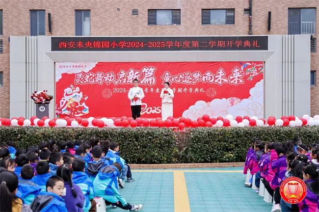 2025年2月14日上午,西安未央锦园小学举行2024-2025学年度第二学期开学典礼。人文与国际教育学院教学副院长栾博强、中文系主任张萍、副主任朱红梅及大学语文与写作课程负责人王中俊受邀出席本次活动,共同见证校际合作新篇章。