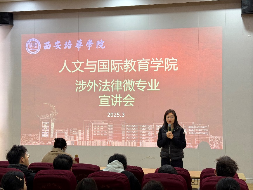 法学院赵洁副院长首先向学生介绍了国家对“涉外法律”人才的需求情况。在“一带一路”倡议和全球经济一体化背景下,精通外语、熟悉国际规则、具备法律专业知识的复合型人才非常稀缺。她指出,“外语+法律”的培养方向将为学生提供更广阔的职业发展空间,助力学生成为具有国际竞争力的优秀人才。