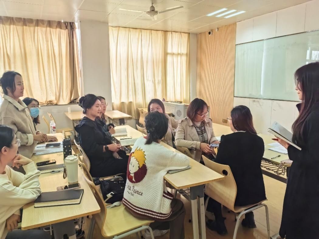 分享结束后,课程组围绕“青年教师如何结合科研与教学”的主题展开深入研讨。贾晶老师结合教育家精神提出,教育家精神的核心是“以文化人”。她结合埃及开罗大学孔子学院的实践案例,强调国际中文教育不仅要传授语言知识,更要通过“中文+文化”的沉浸式教学,培养学生的跨文化理解能力。王越老师结合教科研工作,提出“专业素养与创新实践并重”的观点。她引用上海大学国际中文教育智慧化研讨会成果,建议在教学中引入AI辅助备课、虚拟现实(VR)语言场景模拟等技术,提升教学效率。例如,华侨大学研发的“AI+中文”教学平台已实现智能生成教案、个性化学习路径规划等功能。