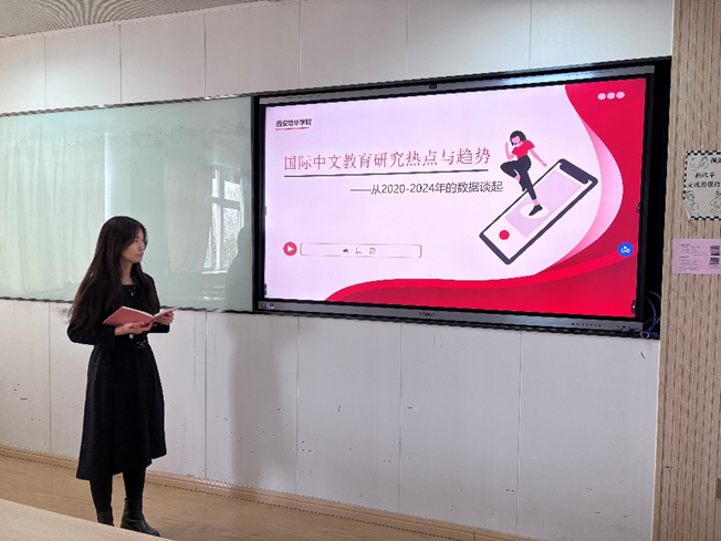 为积极响应学校关于提高课程质量的工作部署,2025年4月2日14时,中文系汉语国际教育课程组在1303教室举办专题教研活动。本次活动以“青年教师思考之从近五年课题立项数据看国际中文教育研究热点与趋势”为主题,由教研室负责人张宜婷主持,课程组全体教师参与。