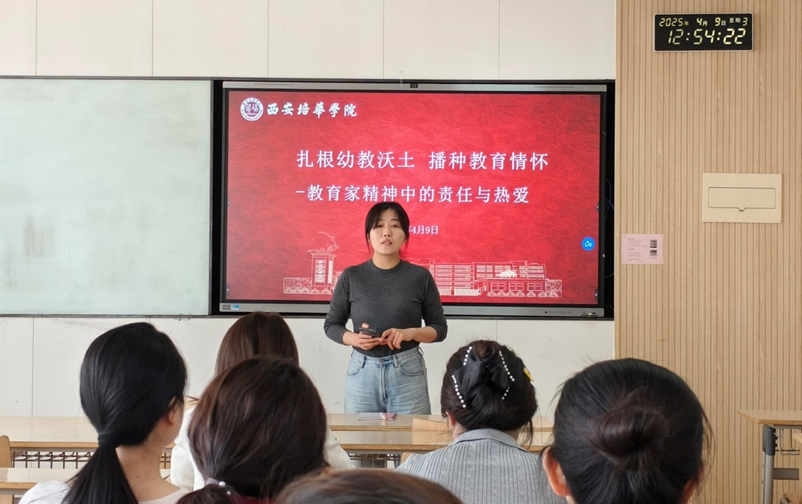 为深入学习贯彻新时代教育家精神,2025年4月9日,学前教育系于1301教室召开“扎根幼教沃土,播种教育情怀——教育家精神的责任与热爱”专题学习会议。会议由系副主任王斯文主持,全体教师参会,共同回顾2025年2月26日陕西师范大学举办的全国优秀教师代表“教育家精神”巡回宣讲活动的精神内核,结合学前教育专业特色展开深度研讨,凝聚新时代育人共识。