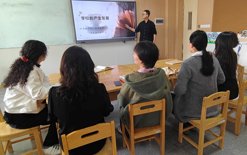 活动中,杨皓明老师作为主分享教师,围绕《教育学原理》课程中的“学校的产生与发展”这一教学内容,进行了精彩的经验分享。杨老师从教学目标的精准设定出发,详细阐述了如何根据学生的知识基础和认知特点,制定既符合课程标准又切实可行的教学目标,确保教学方向的准确性。在教学内容的组织与呈现上,杨老师巧妙地整合了丰富的历史资料和现实案例,将抽象的理论知识与生动的实例相结合,使学生能够更直观地理解学校产生与发展的脉络。例如,通过对比不同历史时期学校的功能与特点,引导学生深入思考教育与社会发展的紧密联系。