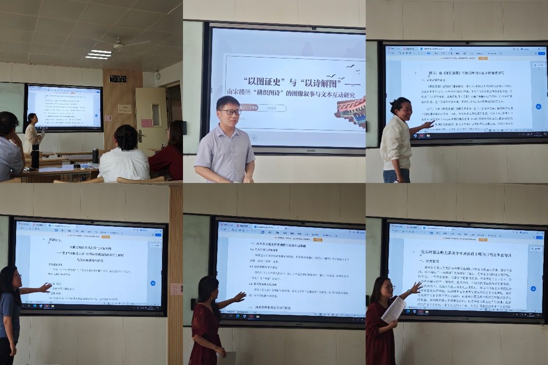 研讨会下半场,学前教育系教师雷婧分享了中华农耕文明文学意象在户县农民画中的视觉转化与国际传播策略的相关思考;学前教育系教师张帆结合个人参与“榆林过大年”全国秧歌展演的参观体验,论述了对榆林秧歌表演进行民俗符号解码与国际传播的研究思路;中文系教师王中俊论述了南宋楼璹“耕织图诗”的图像叙事与文本互动的研究思路与研究重点;中文系教师梁艺凡从空间意向书写、乡村景观与经济布局等方面对《便民图纂》竹枝词中的江南乡村地理书写进行了讨论;中文系教师文丹重点分析了《诗经》中对关中农耕文明的书写;中文系教师陈金雁分别从陕西茶文化的历史渊源与意象生成基础、陕西茶意象的文学书写形态等方面对陕西茶意象的文学书写展开论述。程世和副院长肯定了各位教师的现有研究思路,并结合结每位教师的个人情况、学术背景以及具体汇报内容,分别从研究视角的独特性、学术创新的创新性、理论阐释纵深度及国际视野延展性等方面对各位教师的汇报内容逐一进行点评,强调研究需“回归文学文本的审美肌理、深化学理逻辑的辩证性、强化研究成果的社会介入能力”,以实现学术价值与时代需求的共振。
