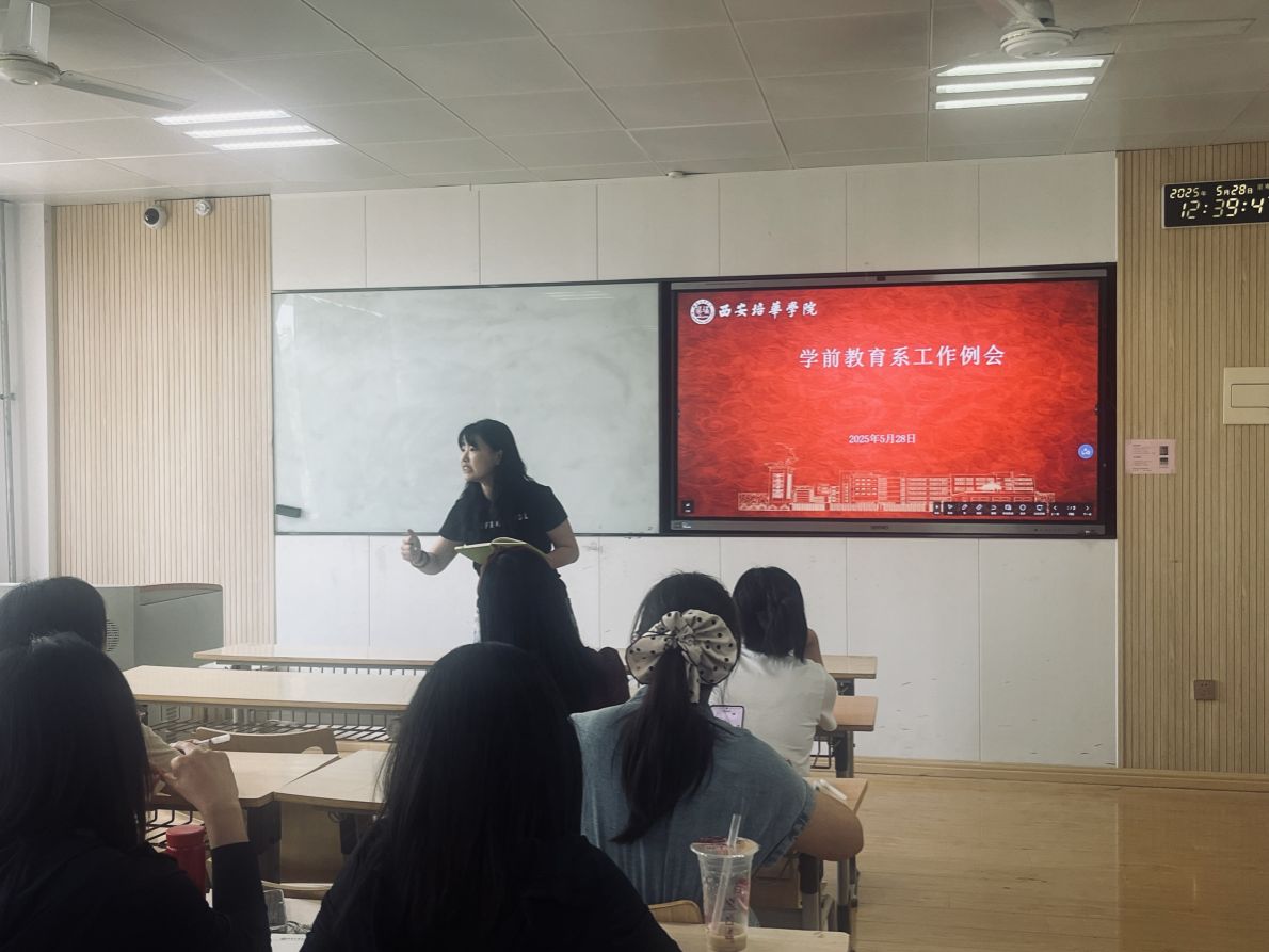 最后,针对西安培华学院学前教育专业校外动静展筹备工作,系主任要求美术组、音乐组、舞蹈组教师积极配合,确保外展活动的顺利开展。教师们表示将全力以赴,为学生提供专业的指导和支持,确保呈现学前教育专业特色与育人成果。