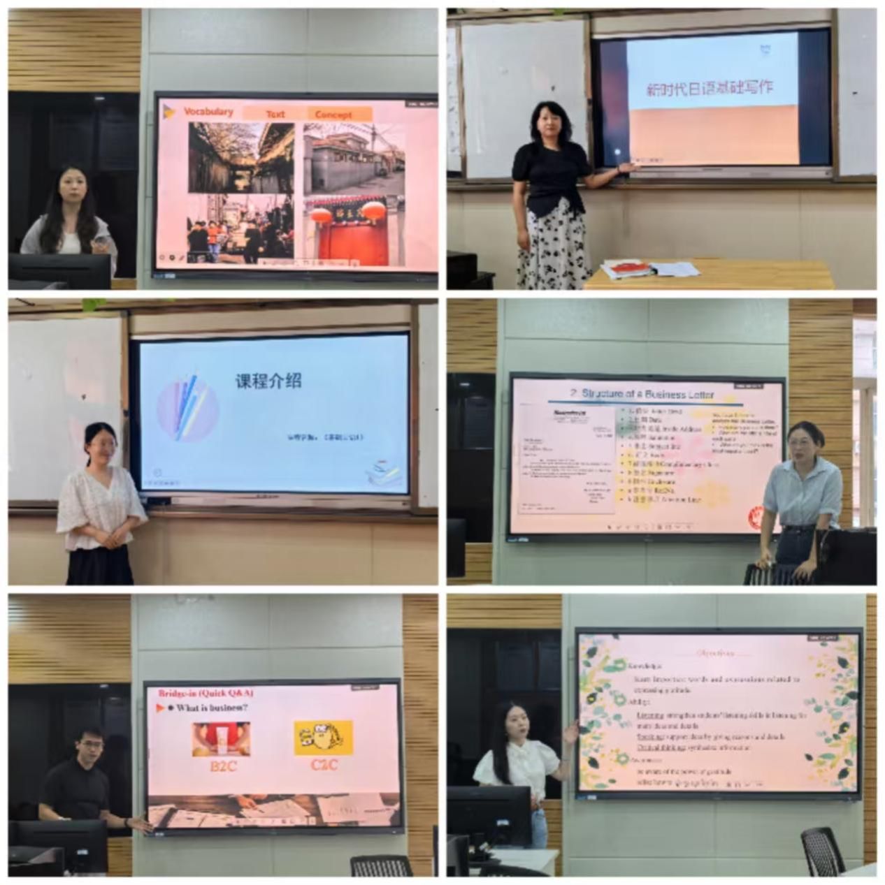 展示课程内容覆盖《综合英语》《英语阅读》《英语语音》《英语视听说》《英美文学选读》《跨文化交际》《基础日语》《日语演讲与辩论》《日语基础写作》等多门英日语专业核心课程以及《商务英语》《外贸函电》等专业方向课程。教师们准备充分,教学设计各具特色,通过巧妙的课堂导入激发学生兴趣,运用现代化的教学工具(如云班课、学习通、各种AI工具)实现师生互动,通过精心设计的课堂任务引导学生进行探究式、合作式学习。饱满的精神状态、流利地道的口语表达、清晰的教学逻辑,充分展现了外语系青年教师扎实的专业基础和蓬勃向上的精神风貌。