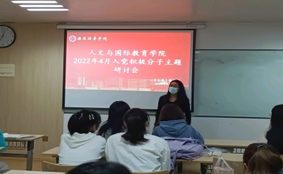 为了进一步提高积极分子的党性修养,更好的使新一批积极分子在组织上入党,更在思想上、行动上入党,2022年4月28日下午,西安培华学院人文与国际教育学院各学生党支部陆续进行专题研讨会,并围绕“为什么入党”这个问题展开了热烈地讨论。会上各支部积极分子精心准备发言,积极参与到讨论中,发表了自己的看法。