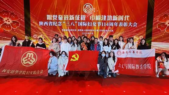 3月6日,人文与国际教育学院党委组织党员师生赴陕西省妇女儿童活动中心参加“跟党奋进新征程·巾帼建功新时代”陕西省纪念“三八”国际妇女节114周年表彰大会。
