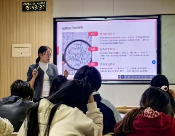 培训伊始,主讲人杨萌明确了心理委员作为 “心理健康文化传播者、朋辈支持核心角色、心理健康守门人” 的三重定位,强调其在普及心理知识、缓解同学困扰、识别潜在危机中的关键作用。针对日常工作实操,培训详细讲解了行为线索监测、多渠道信息整合、隐私边界把控等观察技巧,帮助心理委员精准捕捉同学在出勤率、情绪状态、社交行为等方面的异常信号。