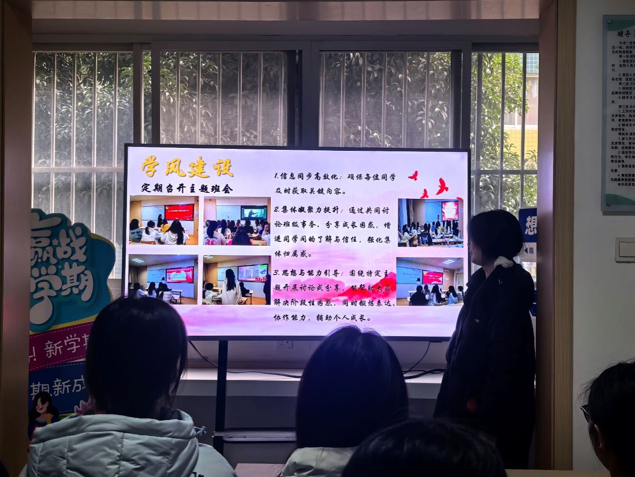 该班代表兰杉杉以“逆风而行,共筑卓越”为主题,详细阐述了他们将学风建设作为班级发展生命线的实践。班级通过定期召开学习经验分享会和朋辈互助小组,深耕语言基础与人文素养;他们借助严格的学业过程管理和“同伴教学”体系,营造了严谨务实、互助共进的学习生态。班级代表分享:卓越的语言能力、深厚的人文底蕴与扎实的学术训练,是班级核心竞争力所在,也是践行“姜维之班”精神的重要根基。同时,兰杉杉同学坦诚分享了班级创建初期存在的创建标准理解不深、分工不细等问题,以及后续调整的思路,建议结合班级实际与专业特色推进创建,为其他班级提供了实用经验。