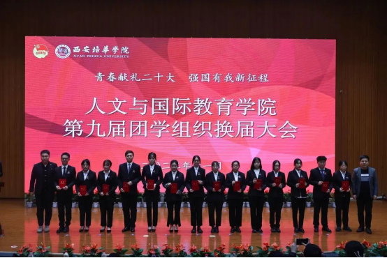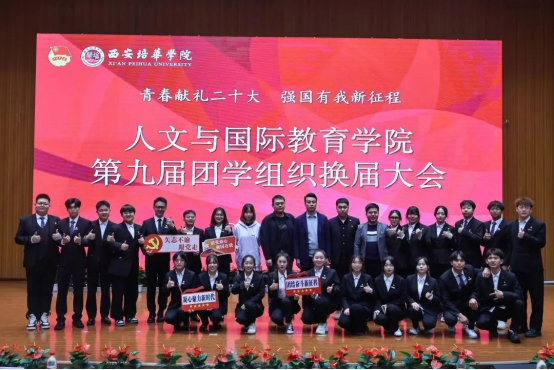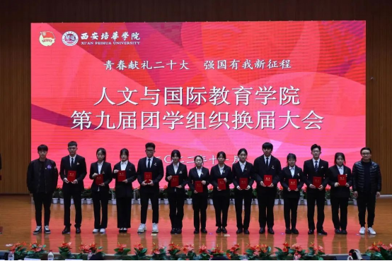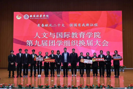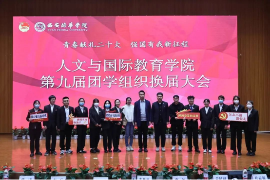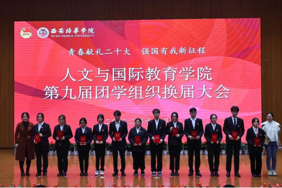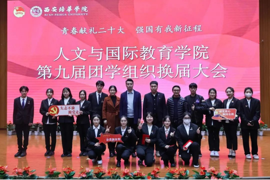 出席本次大会的领导及嘉宾有:西安培华学院团委书记杨媛老师、人文与国际教育学院党委书记兼行政副院长南兵老师、院党委副书记韩斌老师、院团委书记朱林鹏老师、院团委副书记曹帅老师及李晶老师、院学生干事管园园老师、院新闻站指导老师马亮老师及杜雨桐老师、院潜能发展辅导站指导老师冯窦菲老师,以及团学组织全体成员。本次大会由张辉同学和李洋同学主持。