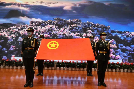 大会第一项,全体与会人员,迎团旗,奏唱团歌。
