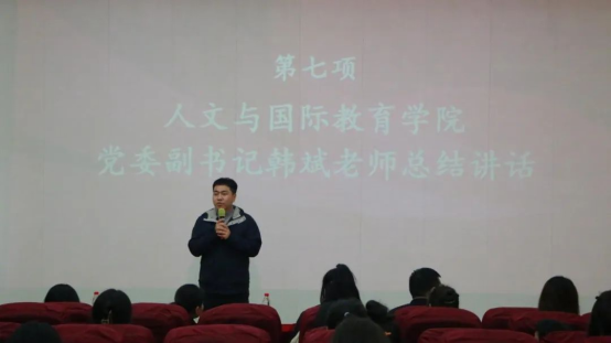 韩斌书记总结讲话首先他强调了举办寝室文化节的重要性,本次活动旨在培养同学们的劳动价值观,引导大家在劳动中感受舍友之间的温情,打造出具有专业特色氛围的宿舍。同学们应当注重维护寝室这“第二个家”。同时,韩书记对各位同学的表现给予肯定,希望在活动之后各位同学能够继续维护宿舍环境,在互帮互助的氛围之中共同努力。
