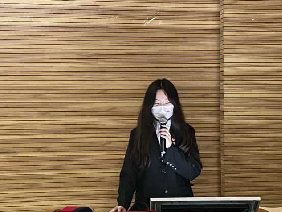 新闻站站长焦晗代表全体干部发言,传播学院咨讯,反映同学心声,作为相机背后的追光者,新闻背后的撰稿人,“学生记者”就像是一个孤独的群体在背后默默付出,但所有的付出都不会白费,热爱并坚持这份工作,不忘初心与使命,把一次次活动办得更加出色,把一篇篇推文写得更加出彩,在新闻站的这段经历会使每一个人都有机会变得更加优秀。对于不懂的地方,她也欢迎大家及时询问,希望能通过自己给大家提供一些力所能及的帮助和建议。