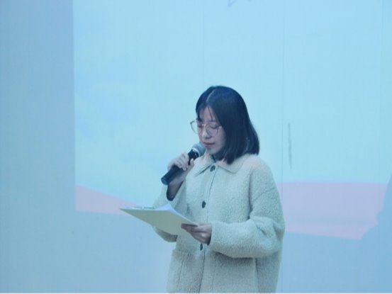 办公室主任张艺婷从文件的整理、海报制作、视频剪辑、撰写策划、对外交接五个方面简单介绍了办公室的职能,为我们勾勒出办公室的日常工作。