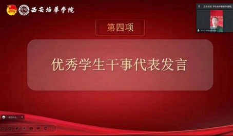 会议第四项,优秀学生干事代表张泽东与赵佳兴分别发言。分享了自己一学期以来的收获和成长,并对之后的工作充满期待。