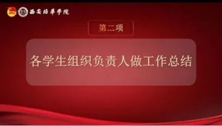 会议第二项,团委、学生会、青年志愿者协会、新闻站、潜能发展中心负责人做工作总结。各组织均能立足于各自组织本职工作,脚踏实地回顾过去一年的工作开展情况、存在不足以及展望新学期的工作计划,也为进一步提升组织队伍建设建言献策,不断提升我院学生组织的影响力。