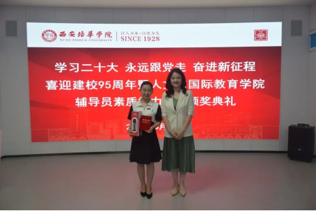 学院于6月21日下午3点我院在VR实训室召开学院辅导员素质能力大赛颁奖典礼。人文与国际教育学院常务副院长梁蕊、教学副院长赵洁、党委书记兼行政副院长南兵以及党委副书记韩斌出席了本次颁奖典礼。