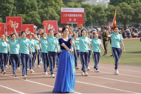 教师队伍身着蓝色运动服,昂首阔步、目光炯炯,他们躬耕教坛、授业解惑,是指引人文院学子砥砺前行的明灯。“翰墨飞扬,筑梦启航,人文国教,赓续华章!”嘹亮的口号展现了他们一往无前的决心。昔日讲台,他们严谨庄重 兢兢业业;今日运动场,他们脚步飒飒;与我们共同感受运动之美!