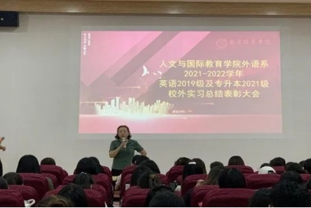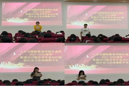 为增强学生的荣誉感,勉励同学们不断前进,外语系英语专业2019级及专升本2021级校外实习总结表彰大会于2022年7月1日中午12:30在博远楼J202召开。外语系副主任周萍老师、英语教育方向和商务英语方向各班实践带队教师出席,英语专业2019级、2021级专升本共计270余名学生参加了本次会议。会议由教育方向实践负责人曹明老师主持召开。