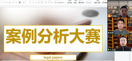 案例分析在2020级法学开展,针对初赛选拔的作品进入决赛,江欣燕、邢航、梁超、王悦老师、校外专家冯春桦老师、张成超老师依据是否能紧扣争议焦点、语言表达是否通顺、逻辑结构是否合理、法律适用是否正确给出分数,最后冯梽、程君婕、唐瑞乾同学获奖。