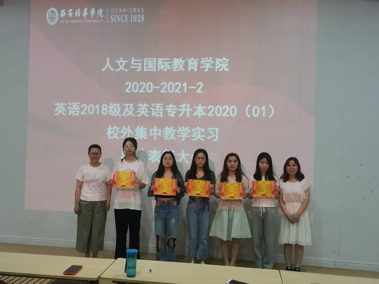 最后由甘世安教授、付丽伟副教授以及本专业带队教师给此次表现优异的同学进行颁奖,致此此次英语专业教育方向的实习圆满结束,也希望英语专业的实习工作能够办的更好!