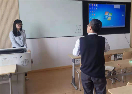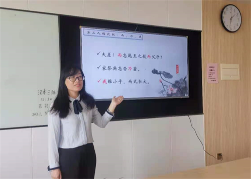 申艳霞老师示范讲授“古代汉语”课程中“人称代词”一节,她借助课堂提问,劝导学生要学会提问题,不仅是课程中的问题,还包括生活中的问题,引导学生懂得只有“解放思想”“求新求变”才能创造美好的明天。