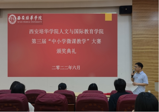 为了进一步促进学生专业发展和提高教学能力,促进信息技术在教育教学中的广泛应用,2022年6月22日,人文与国际教育学院中文系举办了第三届“中小学微课教学”大赛颁奖典礼。此次颁奖活动由中文系王中俊老师主持,中文系教师代表及学生参加了本次颁奖。