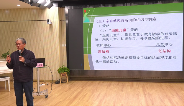 刘迎接教授从”1.为什么要亲近自然2.孩子的探究3.亲自然教育活动“三方面展开对幼儿园自然与课程的话题进行展示、交流和研讨。具体从西北工业大学幼儿园的课程建设实践出发,告诉老师们如何引领孩子们亲近自然,在和孩子们对话与互动中充分释放和激扬他们的天性,让老师们和孩子共同成长。对其它幼儿园、单位的实际工作有着极强的指导意义和借鉴价值,也为培养学前教育人才的专业院校提供了教育教学改革的思考和研究方向。