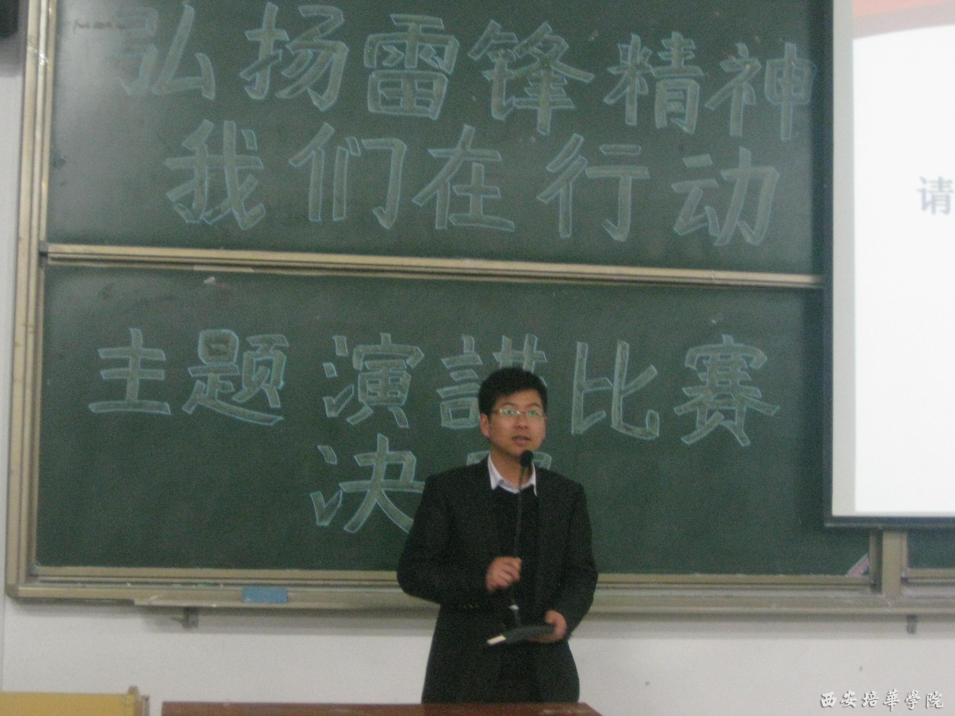 为了积极响应学校开展“向雷锋同志学习——培华人在行动”活动的号召,在广大学生党员中弘扬雷锋精神,外国语学院党总支开展了“向雷锋同志学习主题演讲比赛”。经过各支部初赛选拔,外国语学院全体党员、预备党员和积极分子积极参与,选拔出了十六组优秀选手。3月22日下午五点半在长安校区J202教师举行了决赛。