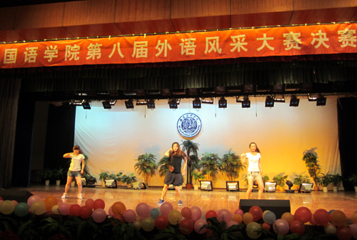外语风采大赛分为初赛、复赛以及决赛,前后历时1个多月。大赛采用全新的组织形式,除评委评分外,还有现场观众投票、网络投票。既保证了选手的质量又保证了比赛的公平公正。来自外国语学院等8个学院的近300名选手参加,经过层层选拔,16名优秀选手闯进了决赛。