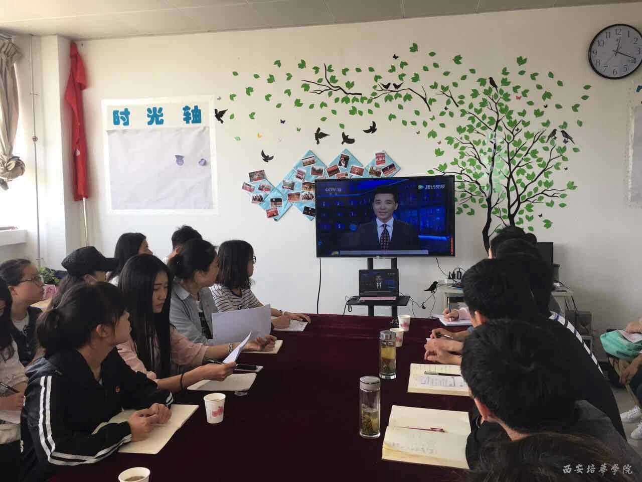 活动第一项全体人员起立庄严地奏唱了团歌。随后重温中央电视台《新闻联播》节目中习近平总书记在中国政法大学考察时的新闻。习近平总书记在参加中国政法大学考察时强调:如何发挥共青团的积极作用是新的时代课题,要与时俱进、积极探索。他说,立志是一切开始的前提,青年要立志做大事,不要立志做大官。高校要立德树人,德法兼修,抓好法治人才培养,立志勤学,刻苦磨练,促进青年成长。