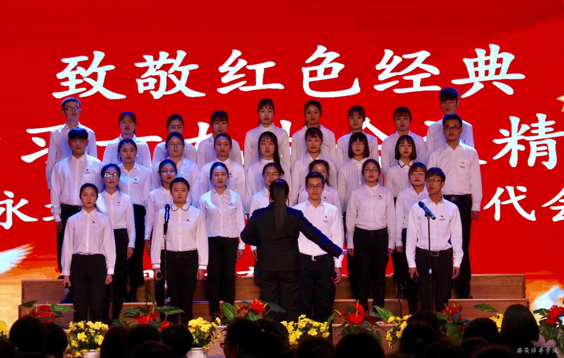 整场汇演中最引人关注的是由学生党支部30名党员带来的合唱《祖国不会忘记》,党员同志胸前佩戴党徽,精神饱满。“不忘初心,牢记使命,永远跟党走”的口号喊出了年轻党员的坚定理想信念。