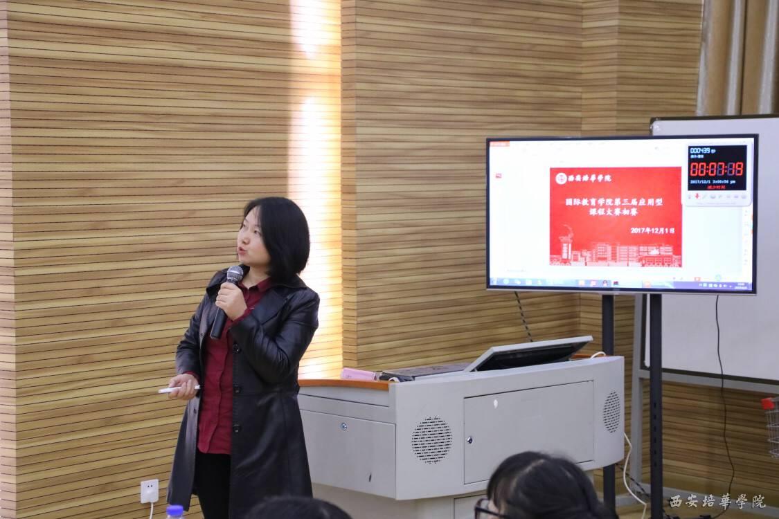 MicrosoftInternetExplorer402DocumentNotSpecified7.8 磅Normal0 为了进一步提高学科、专业建设水平,加深教师对应用型特色课程的认识和理解,全面提高教师业务水平和教学研究能力,该大赛秉承“以赛促学、以赛促创、以赛促教、以赛促业”的宗旨加大教学改革与教学研究力度,加强教风建设,展示教师教学成果,促进教师之间相互交流教学经验,推进教师教学方式和手段的不断改革与创新。12月1日(周五)下午,国际教育学院在格物楼J101教室举行了第三届应用型特色课程大赛初赛。