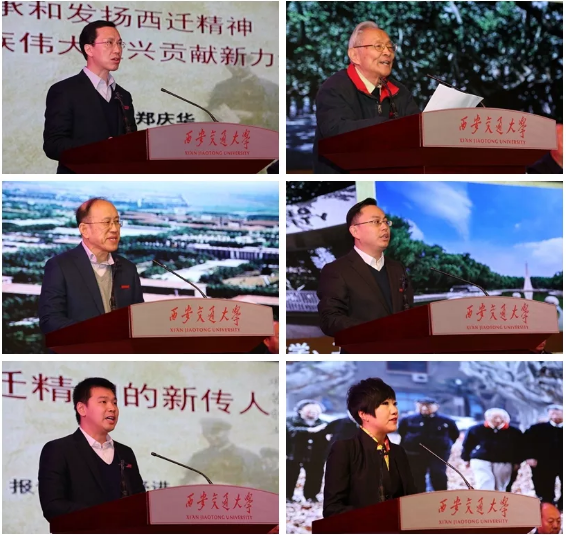 报告会上,西安交大党委常委、副校长郑庆华,西迁老同志、西安交大退休教授潘季,中国科学院院士、西安交大教授管晓宏,西安交大教授徐峰,西安交大博士生林舒进、陕西广播电视台记者陈媛等6位报告团成员,结合亲身经历及感悟,以真挚的语言和生动的故事,从不同角度回望了交通大学波澜壮阔的西迁征程,讲述了西安交通大学“西迁人”感人至深的先进事迹,展现了一代又一代知识分子胸怀赤子之心、坚守报国之志,把自身的前途命运和国家民族的命运紧紧相连的胸襟和情怀。