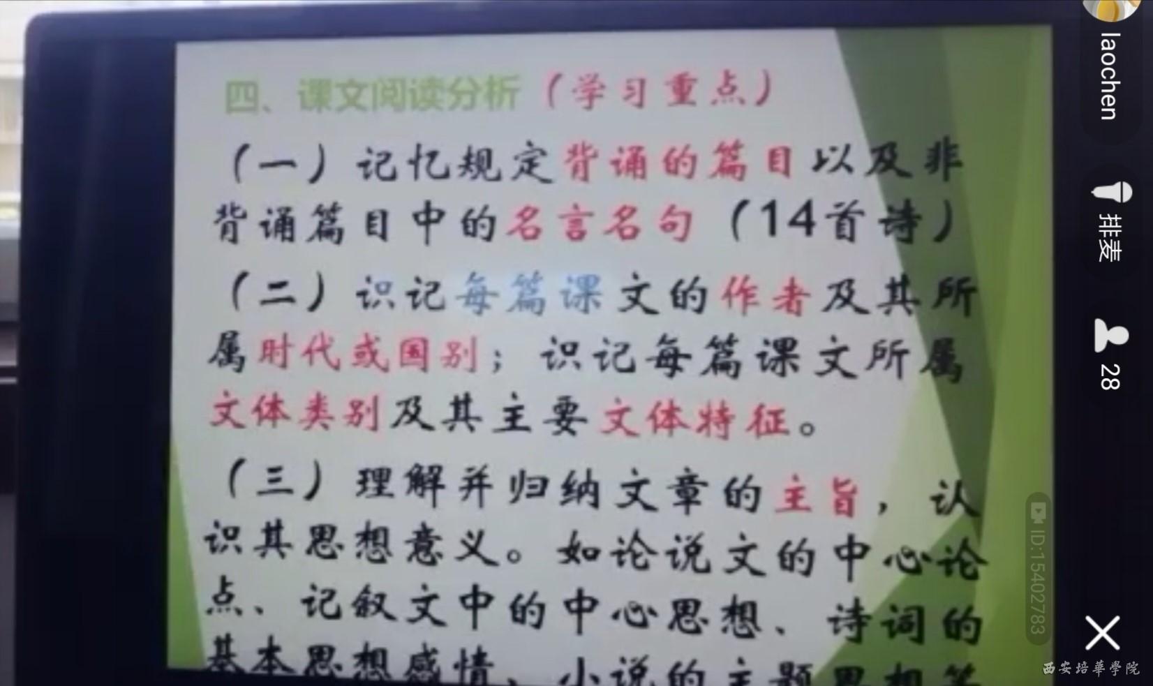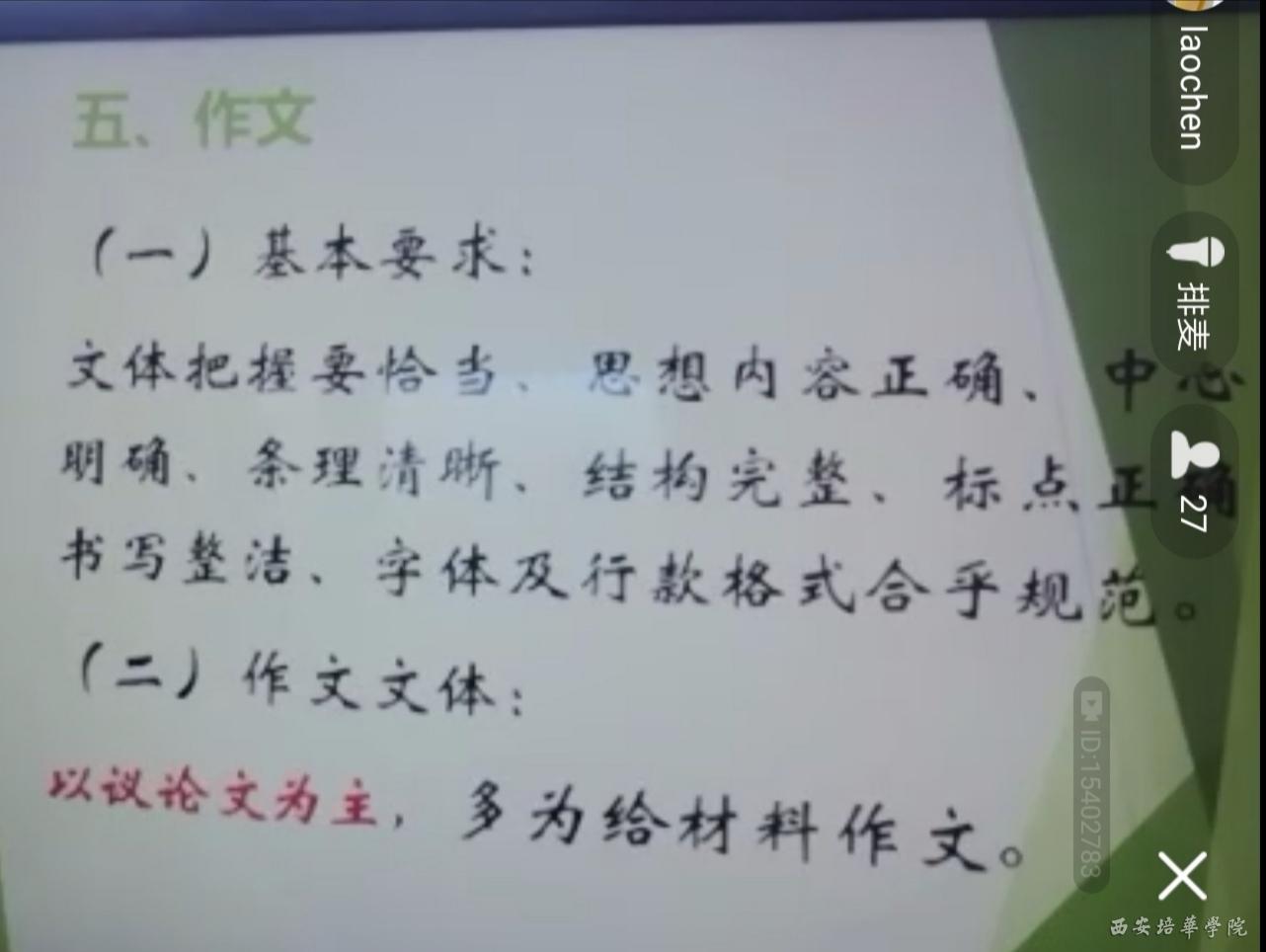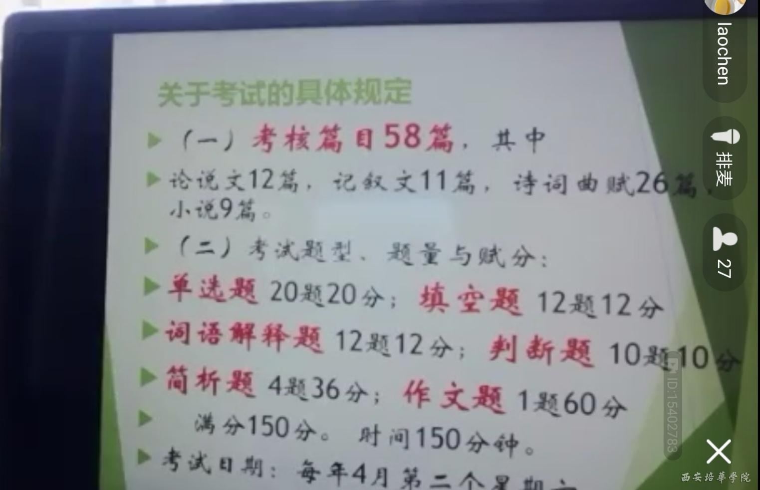 5月2日上午9点至11点,中文系陈卫东老师在QQ群课堂,为2020届汉语专业专升本学生开展了两个小时的《大学语文》考前辅导讲座,活动由王玉玲老师组织主持。