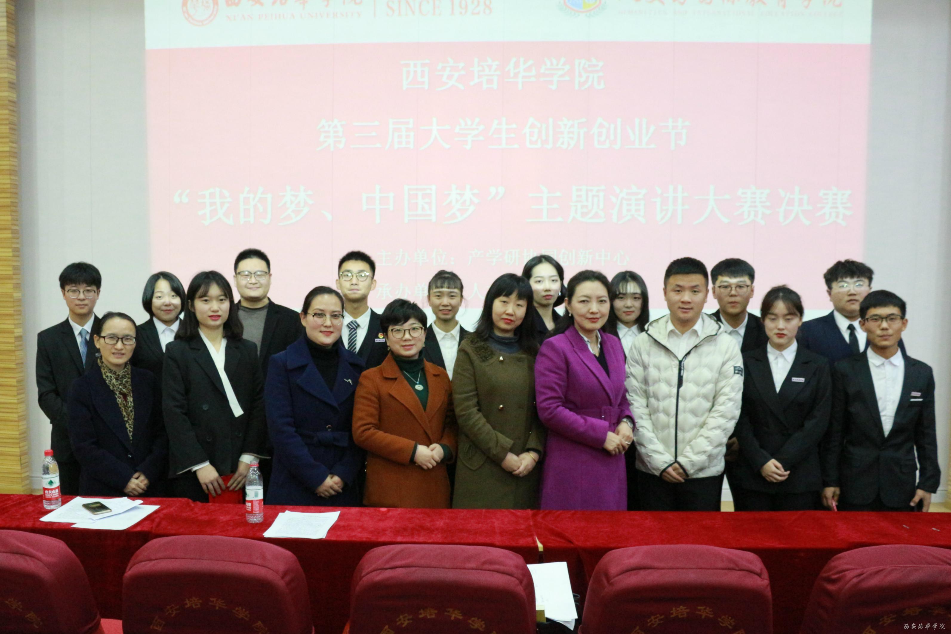 为增强我校广大学生的爱国主义情怀,培养学生树立坚定的理想信念,进一步营造校园创新创业氛围,展示创新创业成果,我校特举行了以“我的梦、中国梦”为主题的演讲大赛。本次大赛由西安培华学院产学研协同创新中心主办、西安培华学院人文与国际教育学院承办。比赛分为初赛和决赛两个阶段,经过历时一个星期的激烈角逐,来自我校各个年级、各个专业的10名选手脱颖而出。12月4日下午2: 00-4: 00,在格物楼J101举办了本次演讲大赛的决赛,中文系主任张静老师、副主任罗妮老师、傅亚卓老师、石庆周老师和吕明凤老师担任此次决赛的评委。此外,参加本次决赛的还有中文系的其他教师学生代表。