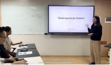 考核过程中,青年教师充分把握讲课机会,在10至15分钟内清晰完整地呈现了准备的教学内容。其中,杨怡璇老师从日本茶道的起源、精神、构成要素、茶道用语四个方面,对日本茶道进行了介绍,并用图片、视频等方式辅助教学。程文老师通过终身学习的文章主题,词汇语法及终身学习意识培养,提升学生英文读写能力并培养终身学习意识。徐楚媛老师运用BOPPPS模式讲解How My Chinese Mother-in-Law Replaced My Husband文章片段,帮助学生初步了解文化差异和性别平等问题以及掌握短语的地道表达。张欣宜老师借助灵活有趣的课堂设计讲述梳理了学生易混淆的阅读技巧知识点,结合相关练习提升了学生的阅读技巧运用能力,同时通过对中国传统文化主题相关文本的阅读增强了学生的文化自信。李媛老师通过中西文化不同的主题,引导学生认识东西方文化中家庭角色与家庭责任的异同点,培养学生国际化视野,同时强调文化没有好坏之分,只有不同。柴雨虹老师主要讲述了第二章节关于商务场合着装规范的内容,选取了正确着装和错误着装的案例,深入进行了分析和讲解。任洪雨老师以Sonnet 18为例,讲解了莎士比亚式的十四行诗在形式上的特点,包括五音步抑扬格、韵律、结构等内容。雷博雯老师讲授科目为英语课堂活动与设计,主要内容为全身反应法这一教学法,围绕视频案例进行分析,帮助学生理解。徐凯通过对《基础英语(四)》Unit3第一自然段内容的讲解,引导学生理清上下文关系,根据教学目标提出问题并通过解读文章解决问题,并进行批判性思考。吴梦媛老师针对艺术类专业的大一新生,讲解了一篇英语课文,内容覆盖单词、句法,具体对定语从句进行了讲解和练习。张含烟老师主要讲述了日语初级阶段关于「う・ようと思う」意志形的语法句型,通过回顾旧知、导入新知、有重点地进行重难点辨析,借助思维拓展、翻译讨论等课堂组织形式引导学生思考语言运用,树立生涯学习的意识和长远的个人目标。